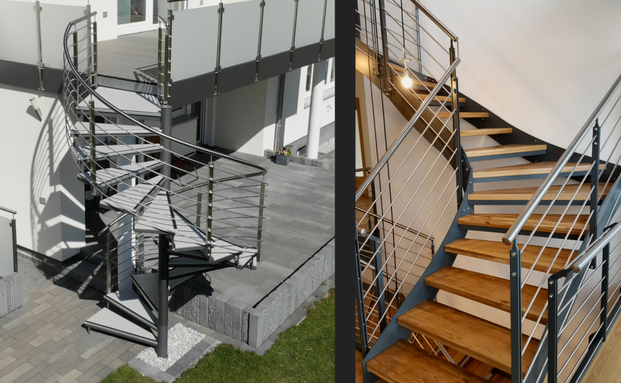 Ob für Innen- oder Außenbereich wir produzieren Podest-, Wendel- oder gerade Treppen. DieTragkonstruktion fertigen wir aus Stahl oder Edelstahl. Das Stufen Material besteht zumeist